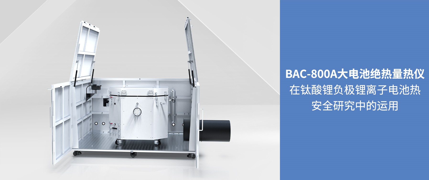 BAC-800A大型電池絕熱量熱儀是仰儀科技BAC系列電池絕熱量熱儀泄壓型技術(shù)路線的典型代表,用于研究長(zhǎng)邊900mm以下大尺寸電池單體及其模組等熱失控、熱蔓延機(jī)制,儀器爐腔直徑達(dá)800mm,深520mm。