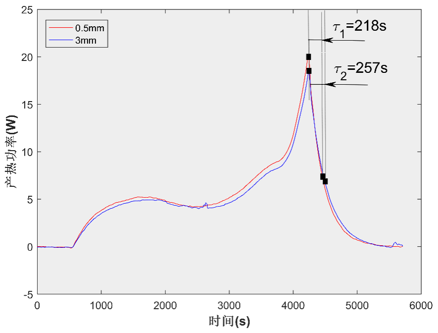 為了初步辨析影響熱滯后性的主要因素,本文研究了電池厚度、導熱硅膠墊厚度和實驗溫度三類因素對等溫量熱儀測量結果的影響。同時,在文末提出了一種對熱滯后效應進行修正的簡易方法。