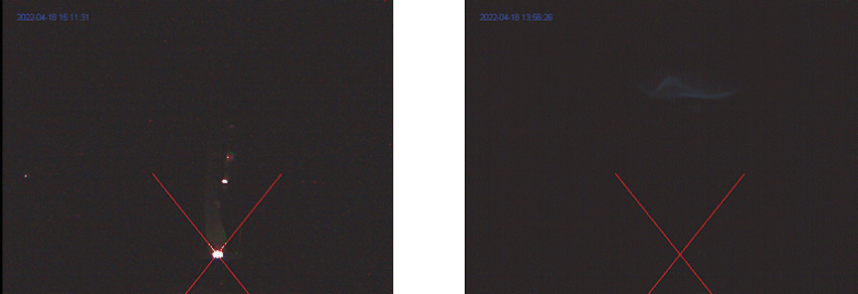 臨界狀態(tài)下火焰?zhèn)鞑ズ突鹧娌粋鞑サ膭討B(tài)圖像如圖2和圖3所示,可測定得到樣品爆炸下限:LEL=0.5×(4.185+3.897)%=4.04%;