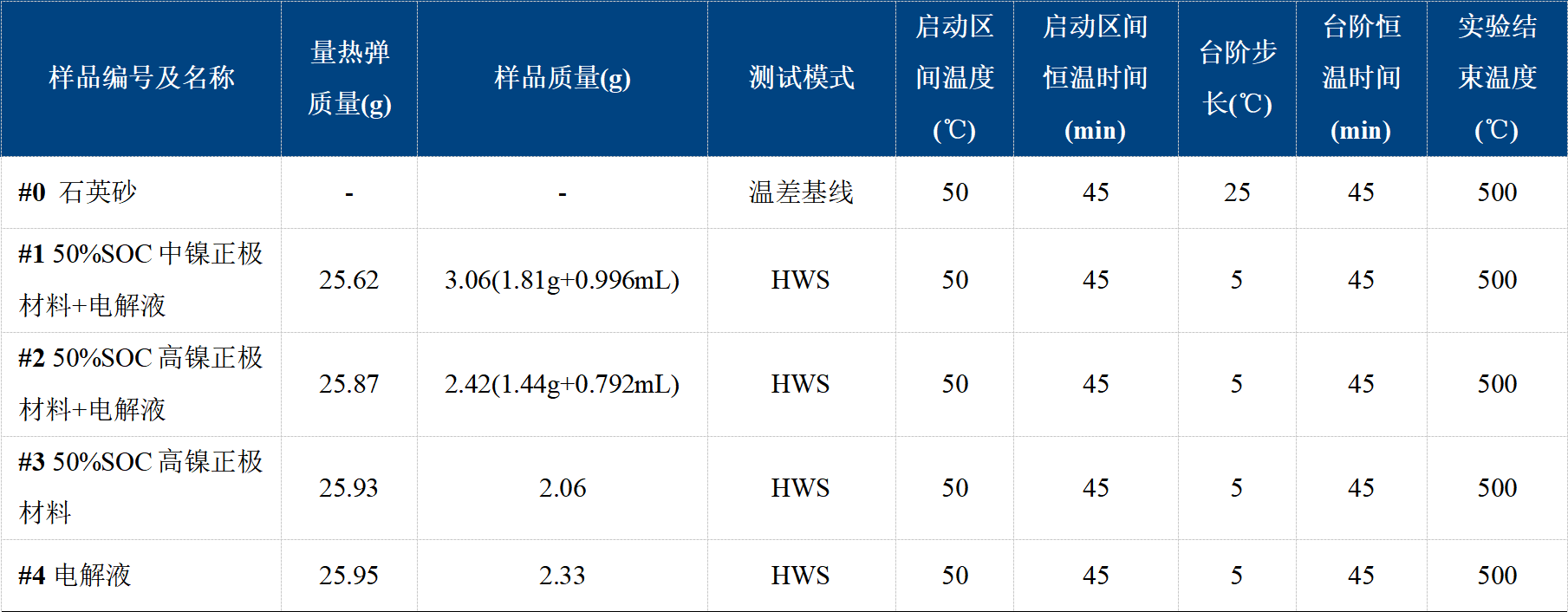 實(shí)驗(yàn)樣品:50%SOC中鎳正極材料、50%SOC高鎳正極材料、電解液(EC+DMC+LiPF6)。