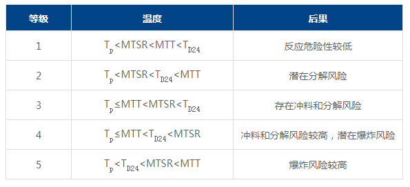 針對(duì)不同的反應(yīng)工藝危險(xiǎn)度等級(jí),需要建立不同的風(fēng)險(xiǎn)控制措施。對(duì)于危險(xiǎn)度等級(jí)在3級(jí)及以上的工藝,需要進(jìn)一步獲取失控反應(yīng)溫度、失控反應(yīng)體系溫度與壓力的關(guān)系、失控過程最高溫度、最大壓力、最大溫度升高速率、最大壓力升高速率及絕熱溫升等參數(shù),確定相應(yīng)的風(fēng)險(xiǎn)控制措施。