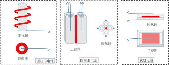 GB/T 36276-2018和 UL 9540A:2018觸發(fā)電芯熱失控的方法均為加熱法[2]。UL 1973:2018除采用外部加熱法外,提供了多種觸發(fā)熱失控方法,包括內(nèi)部缺陷類:導電污染物、隔膜破壞、內(nèi)部加熱器;外部應力類:外部加熱器、擠壓機制、針刺、短路、過充。