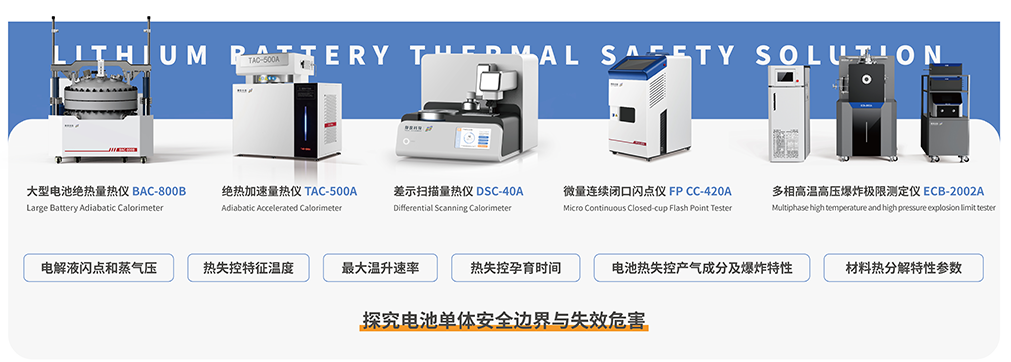 電池單體熱失控測試解決方案:模擬各種熱失控觸發(fā)條件下鋰電池的熱失控過程,幫助客戶探究電池單體安全邊界與失效危害。