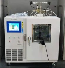 其中Lm為混合氣體的爆炸極限;L1、L2、……、Ln為各組分的爆炸極限;V1、V2、…、Vn為各組分的含量。經(jīng)過計算可得該電池產(chǎn)氣的爆炸下限LFL=33.02%。接下來我們通過實驗對上述計算進行驗證。如圖3所示,本案例使用爆炸極限試驗儀(仰儀科技HWP21-30S型)對混合氣的爆炸極限進行測試。通過該儀器可自動配氣,根據(jù)點火后的閃燃現(xiàn)象可判斷設(shè)定濃度下樣氣是否已達到爆炸極限。