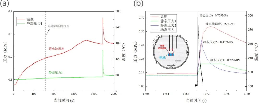 d. 監(jiān)測容器內(nèi)壓力和溫度變化,記錄電池泄壓閥開啟時刻;