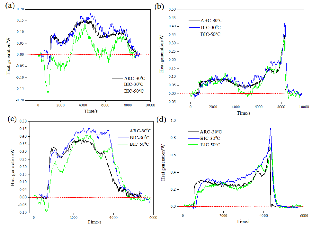 2.當(dāng)電池最高溫度未明顯超過(guò)正常使用溫度的情況下,利用絕熱法測(cè)定的產(chǎn)熱量會(huì)小于等溫法;