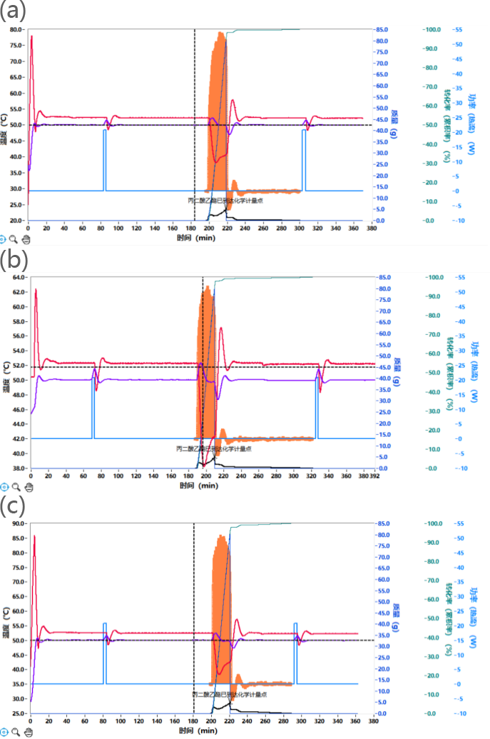 2.3 20 min內(nèi)自動(dòng)進(jìn)樣丙二酸二乙酯,并反應(yīng)60 min;