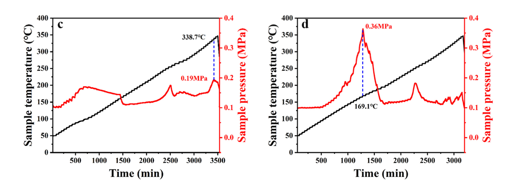 本研究將含有約1.0-1.2 g樣品的不銹鋼彈體嵌入絕熱加速量熱儀TAC-500A設(shè)備中。在50℃~350°C范圍內(nèi)采用經(jīng)典的加熱-等待-搜索(H-W-S)模式,該模式每個(gè)目標(biāo)溫度之間的加熱間隔為5°C,每個(gè)目標(biāo)溫度保持30分鐘,檢測(cè)靈敏度高,能自動(dòng)檢測(cè)并精準(zhǔn)獲取到該反應(yīng)下的溫度和壓力實(shí)時(shí)變化數(shù)據(jù),從而計(jì)算出該反應(yīng)的關(guān)鍵熱安全參數(shù),為其反應(yīng)危害評(píng)估提供可靠的數(shù)據(jù)支持。